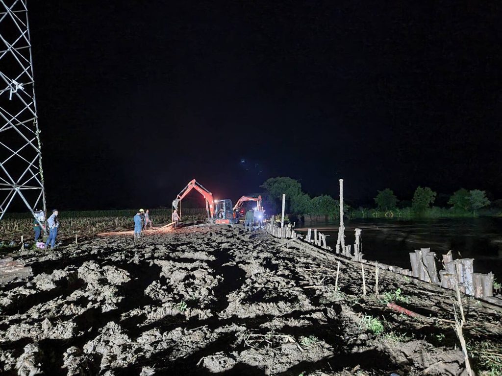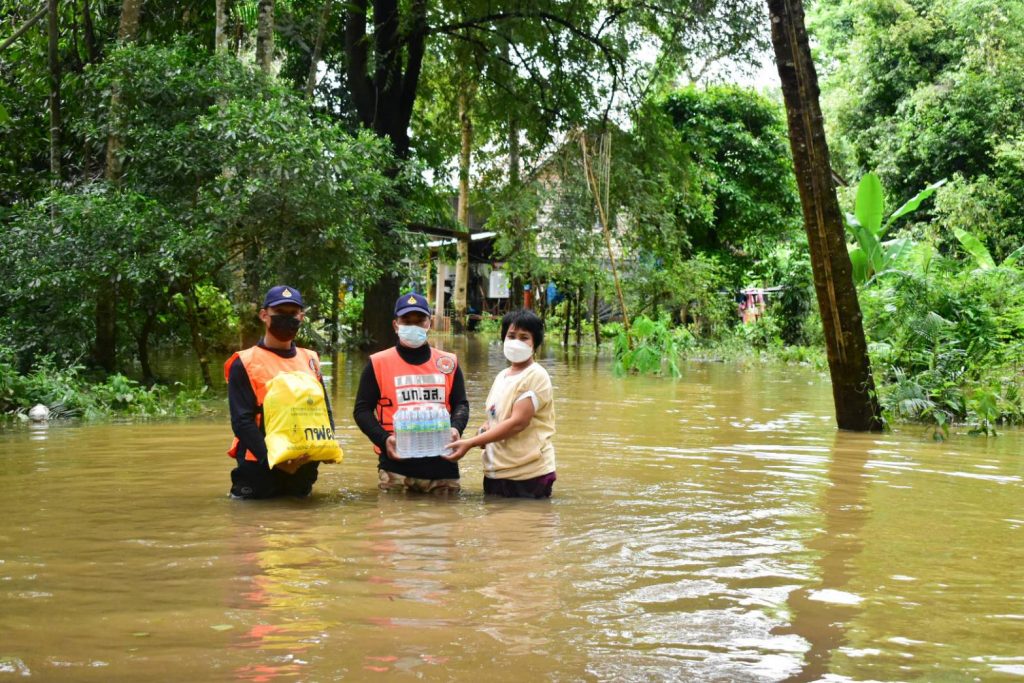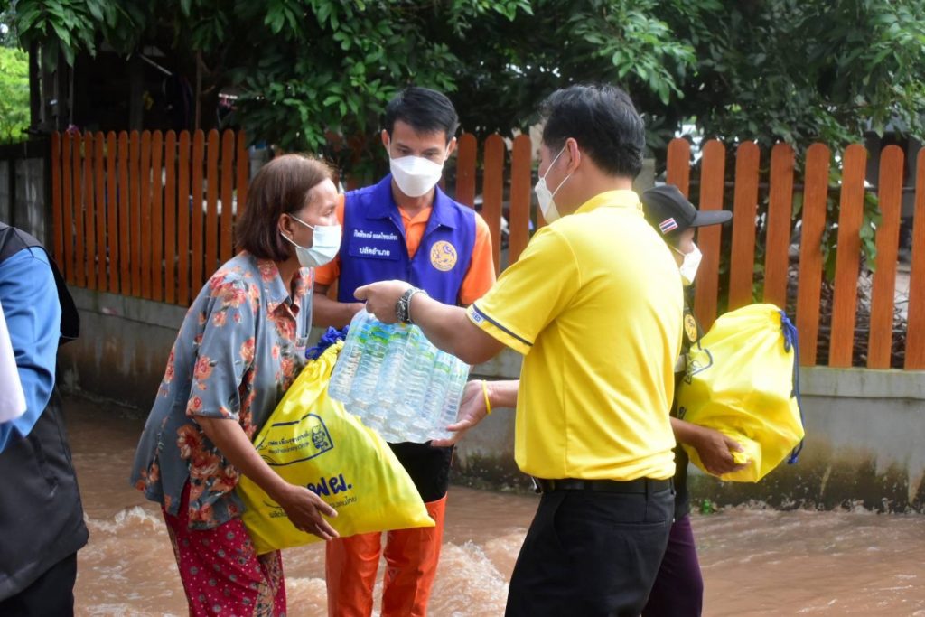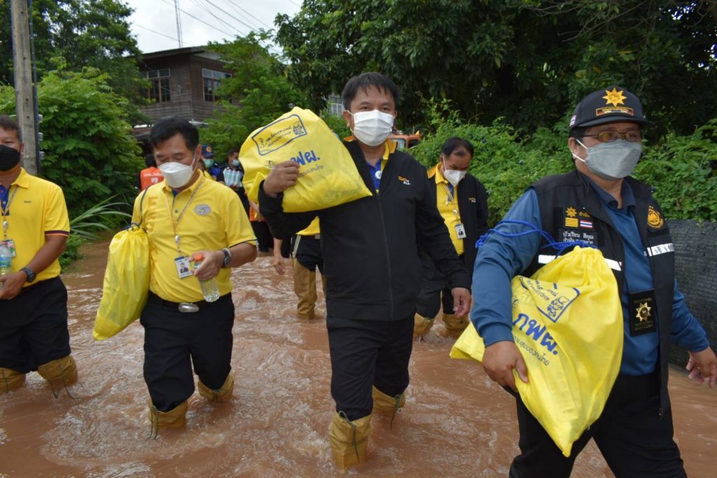 In Tak Province, EGAT Bhumibol Dam supported a sand truck and a backhoe to work with Armed Forces Development Command to build barriers in the flood risk areas of Sam Ngao District. It also gave 220 survival bags and 260 bottles of drinking water to people in Sam Ngao and Ban Tak districts to relieve difficulties.