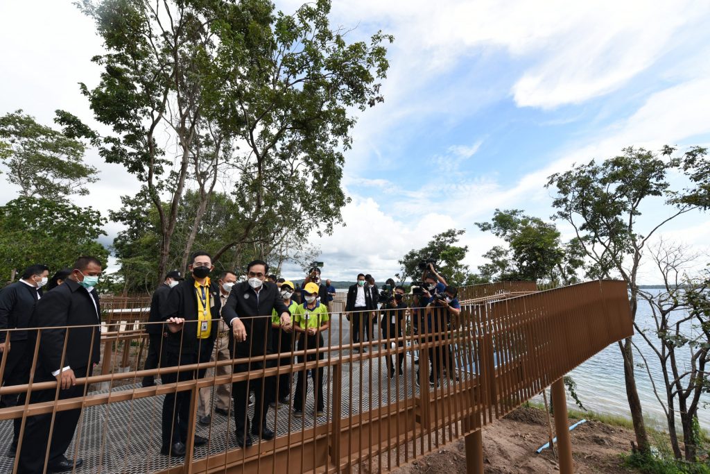 Furthermore, the Prime Minister and his entourage visited the Nature Walkway, with a junior guide giving information. From the Nature Walkway, visitors can see the bird’s-eye view of the world’s largest floating solar hybrid project, a soon-to-be tourist attraction of Ubon Ratchathani. The prime minister congratulated people in Ubon Ratchathani for the new tourist attraction that enhances colorful tourism for the country.