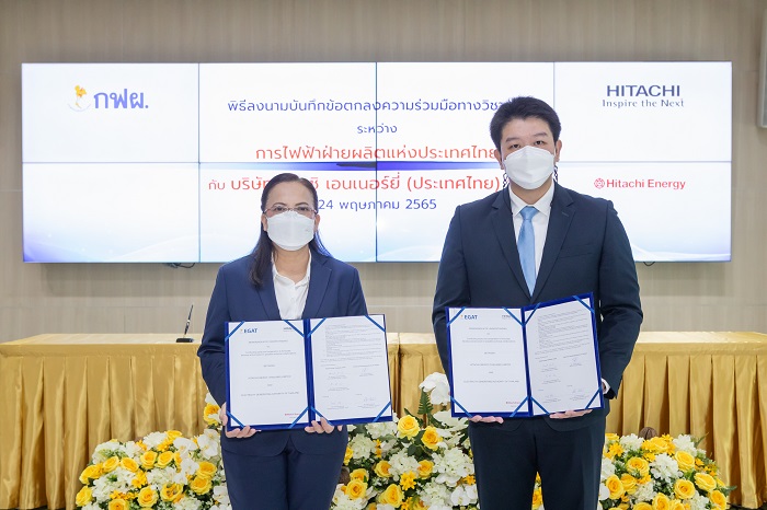 On May 24, 2022, Dr. Jiraporn Sirikum, Deputy Governor – Strategy of the Electricity Generating Authority of Thailand (EGAT), together with Dr. Worawut Waruttamapornsu, Country Managing Director, and Dr. Praditpong Suksirithawornkul, Vice President, Marketing & Sales – Utility of Hitachi Energy (Thailand) signed a Memorandum of Understanding for future sustainable energy development. On this occasion, the executives of both parties attended the ceremony, held on the 3rd Floor, EGAT 50th Anniversary Building, Bang Kruai District, Nonthaburi Province.