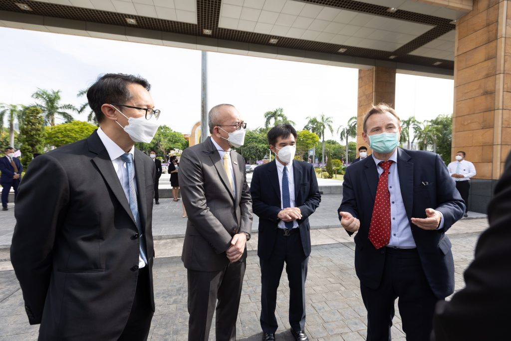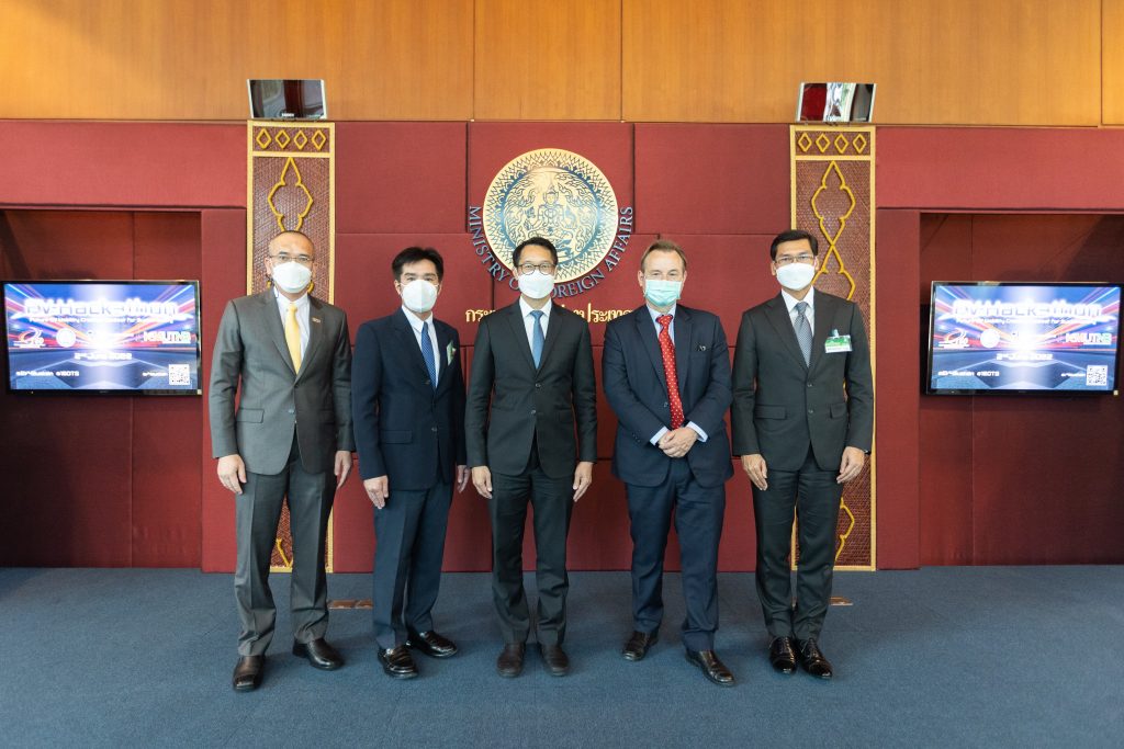 Mr. Suttipong Chalermkiat, Assistant Governor – Sustainability Management of the Electricity Generating Authority of Thailand (EGAT) represented EGAT at the press conference for the project ‘EV Hackathon: Future EV Mobility Creative Contest for Sustainability #EV4Sustain’ along with Mr. Asi Mamanee, Director-General of Department of European Affairs, Ministry of Foreign Affairs; H.E. Georg Schmidt, Ambassador of Germany to Thailand; Prof. Dr.-Ing. habil. Suchart Siengchin, President of King Mongkut’s University of Technology North Bangkok (KMUTNB); and network partners in order to commemorate the 160th anniversary of the establishment of diplomatic relations between Thailand and Germany on June 2, 2022, at the press conference room, Department of Information, Ministry of Foreign Affairs.