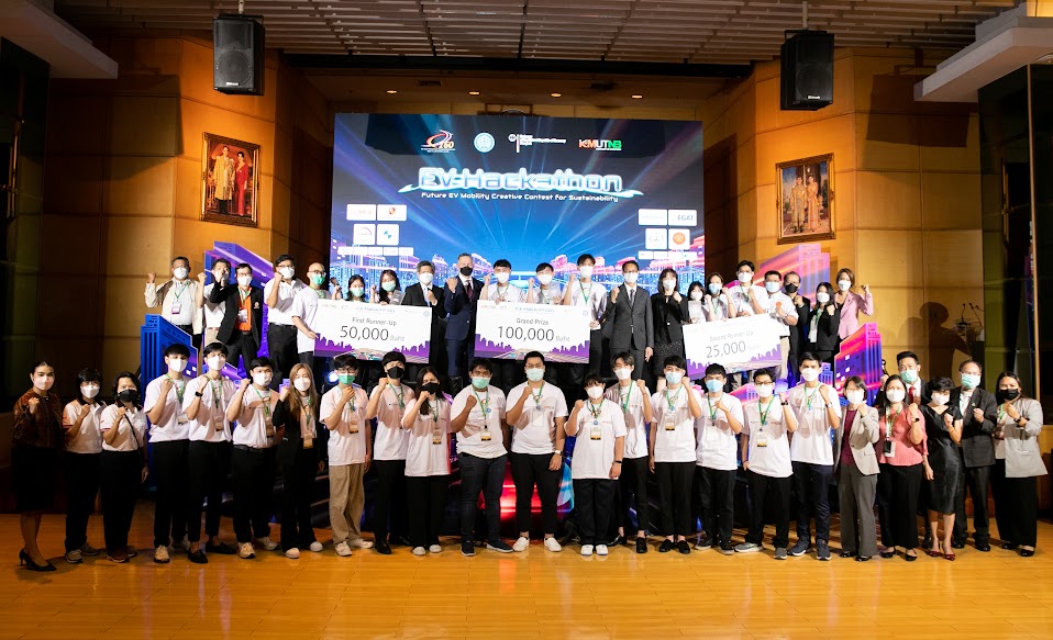 Out of 103 teams attending the contest, eight teams had been selected to the final round of 24-hour EV Hackathon to solve the problem: “Invent solution of sustainability in Bangkok Metropolis with EV Mobility Technology” assigned by Royal Thai Embassy in Berlin, Germany. The ACDC team from Chulalongkorn University was the winner receiving a 100,000-Baht cash prize. The first runner-up was the PorMayJedai team from KMUTNB receiving a 50,000-Baht cash prize, while the second runner-up was the Bangmod team from King Mongkut’s University of Technology Thonburi (KMUTT) receiving a 25,000-Baht cash prize.