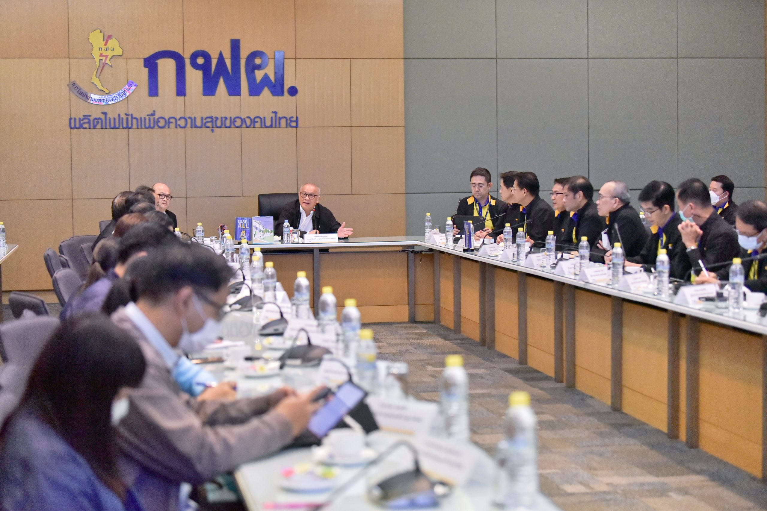 On November 11, 2022, Mr. Supattanapong Punmeechaow, Deputy Prime Minister and Minister of Energy; Director General, Department of Mineral Fuels (DMF); and representatives from PTT Exploration and Production PCL (PTTEP) paid a visit and attended a meeting to follow up the operation of Mae Moh Mine of Electricity Generating Authority of Thailand (EGAT), at EGAT Mae Moh, Mae Moh District, Lampang Province. On this occasion, Mr. Boonyanit Wongrukmit, EGAT Governor and senior executives gave them a warm welcome and presented EGAT operation progress, including the possibility and potential in reducing CO2 emissions and storing CO2 in the deep rock layer under Mae Moh Mine and the re-commissioning of Mae Moh Power Plant, Unit 4 to tackle with the energy crisis.