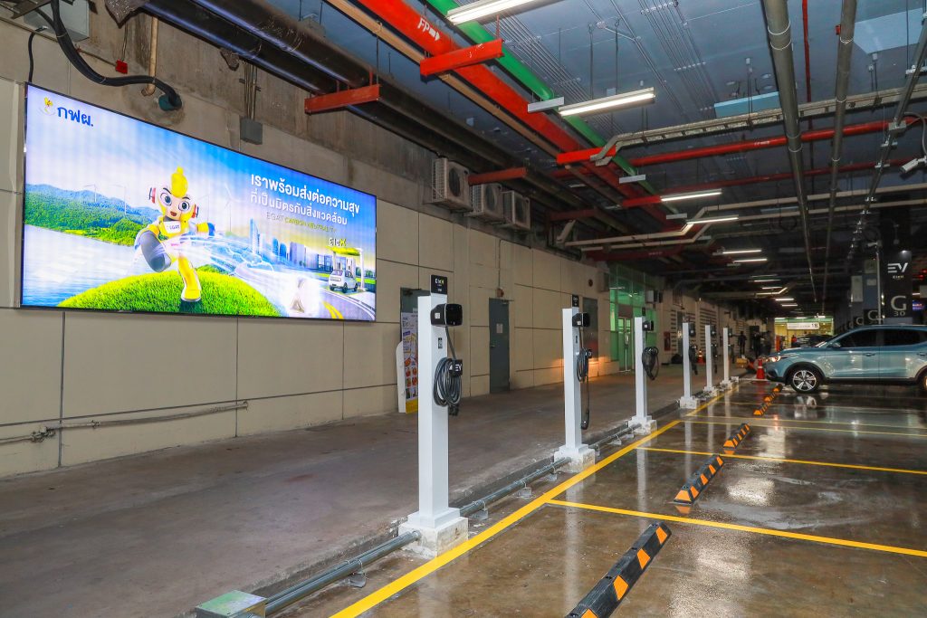 On this occasion, EGAT Governor and Mr. Paul Kanjanapas, Chief Executive Officer of IMPACT Exhibition Management Co., Ltd. jointly opened the EleX by EGAT charging stations to serve EV users who visit IMPACT Arena, Exhibition and Convention Center, Muang Thong Thani. The two charging stations with a total of 13 slots are located at P1 parking building, Challenger Hall (AC Normal Charge with 9 slots) and the parking lot of Novotel Hotel (60-125kW DC Fast Charge with 4 slots. This will make the area become the charging stations with the most chargers in Nonthaburi Province.