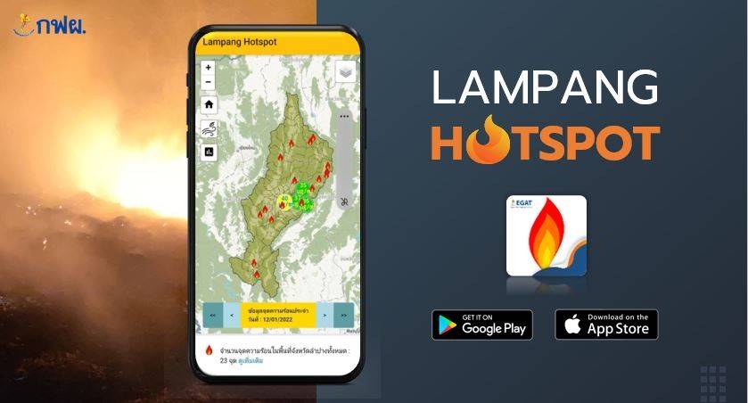 Mr. Chaiwut Lakmuang, Assistant Governor – Sustainability Management and Deputy Spokesperson of Electricity Generating Authority of Thailand (EGAT), revealed that due to current PM2.5 situation, EGAT was concerned on the public health, thus encouraging people to monitor real-time air quality via Sensor for All application integrating data from 1,262 sensor stations installed at power plants, industrial areas, intersections, and tourist attractions nationwide. Moreover, EGAT developed Lampang Hotspot application using sensor and satellite systems to precisely monitor hot spots of burned forest in Lampang Province and report the risk through the website to be a database for the fire operation.