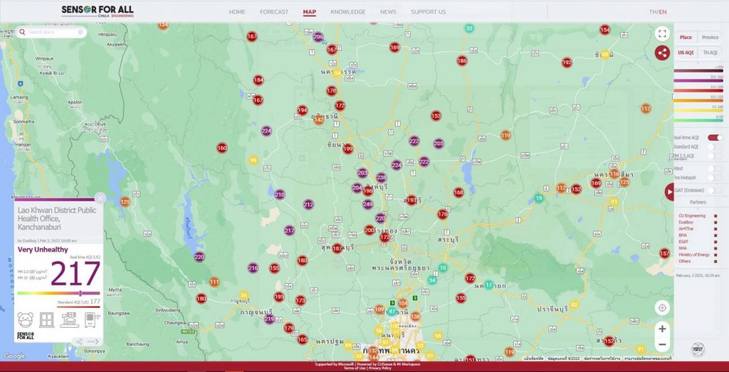 EGAT recommended Sensor for All application to monitor PM2.5 with integrated data from over 1,200 sensor stations nationwide, applied innovations to make smog and wildfire alerts, and cooperated with volunteers to tackle wildfire and smog issues around EGAT dams and power plants.