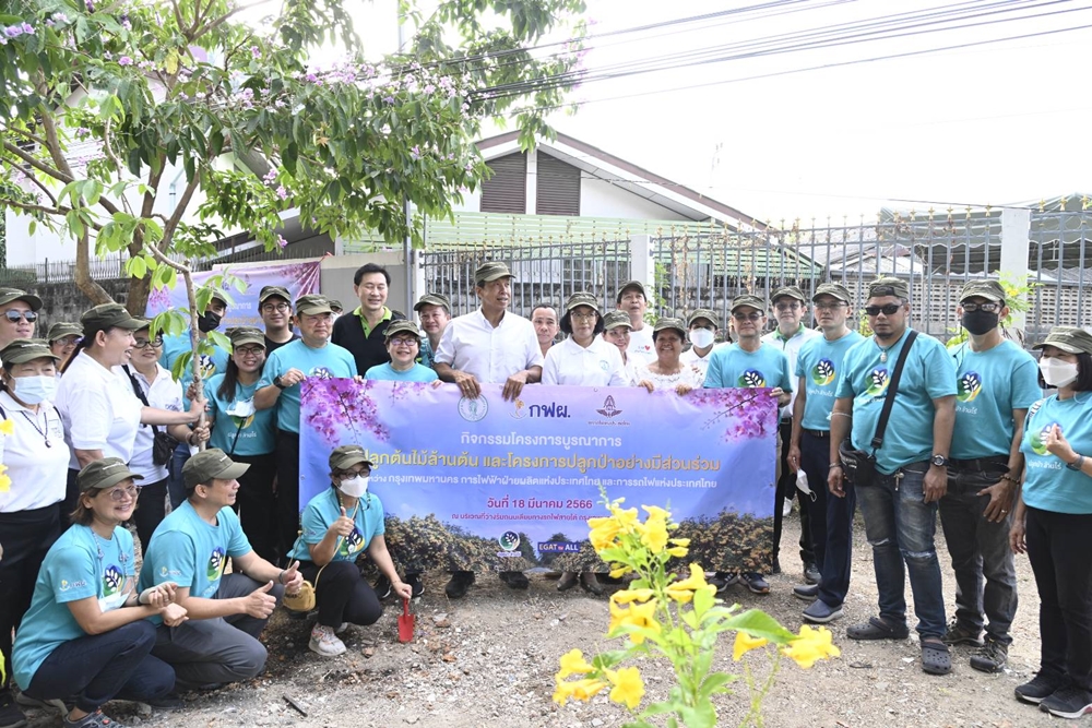 On March 18, 2023, Mr. Chadchart Sittipunt, Bangkok Governor, presided over the opening ceremony of the activity integrating Bangkok’s One-million-rai Reforestation Project with the Participatory Reforestation Project of Electricity Generating Authority of Thailand (EGAT), with a cooperation of State Railway of Thailand (SRT). This event was organized by Bang Phlat District Office to increase green space in the city, create a natural wall filtering particulate matters, maximize the use of existing area, and solve the illegal littering problem in the vacant area at the end of Charansanitwong 75 alley, Bang Phlat District, Bangkok.