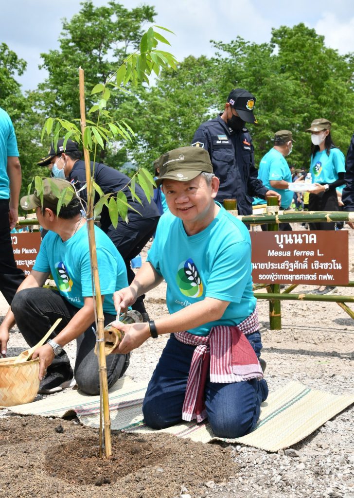 Mr. Prasertsak Cherngchawano, EGAT Deputy Governor – Strategy, revealed that the reforestation in this area aims to restore the watershed forest in Mae Ngao National Reserve, Lampang Province, covering an area of 2,000 rai. This reforestation is the first Premium T-VER project in Thailand, with the international evaluation standard focusing on sustainability and the coexistence between humans and forests, the community’s opinions and feedback, the assessment of sustainable development, and the expansion of carbon credit market both domestic and international levels. It also aligns with the EGAT Carbon Neutrality and Thailand Carbon Neutrality. The planted trees comprising 13 different tree species, totaling 5,000 trees cover an area of 25 rai.