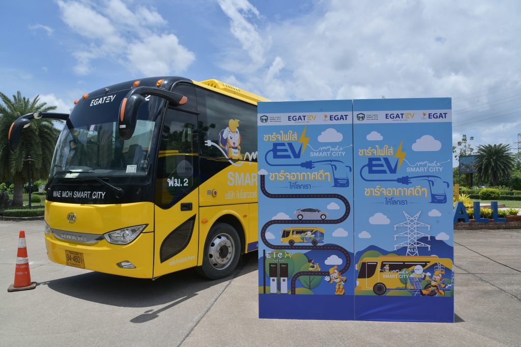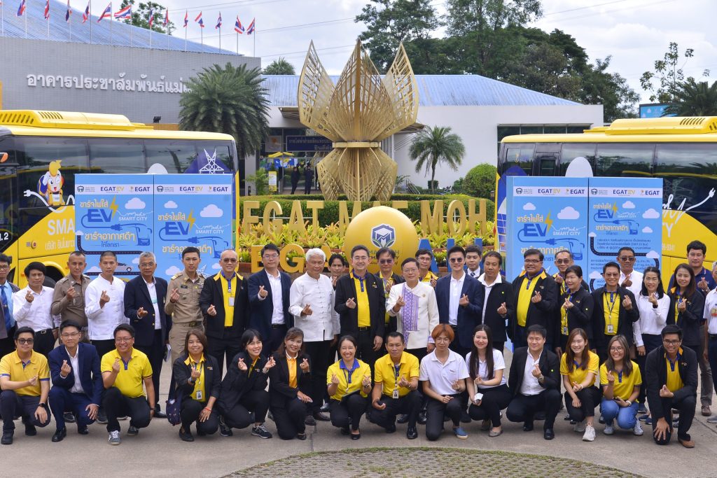 On August 10, 2023, the Electricity Generating Authority of Thailand (EGAT) launched the electric minibuses in the event, “Charge EVs, Charge Our World with Clean Air,” chaired by Mr. Siriwat Bupphacharoen, Deputy Governor of Lampang Province. Mr. Boonyanit Wongrukmit, Governor of EGAT; EGAT executives; heads of Lampang provincial authority and Mae Moh district authority; Digital Economy Promotion Agency (DEPA); Chiang Mai University; and community leaders also attended the event at EGAT Mae Moh in Mae Moh District, Lampang Province.