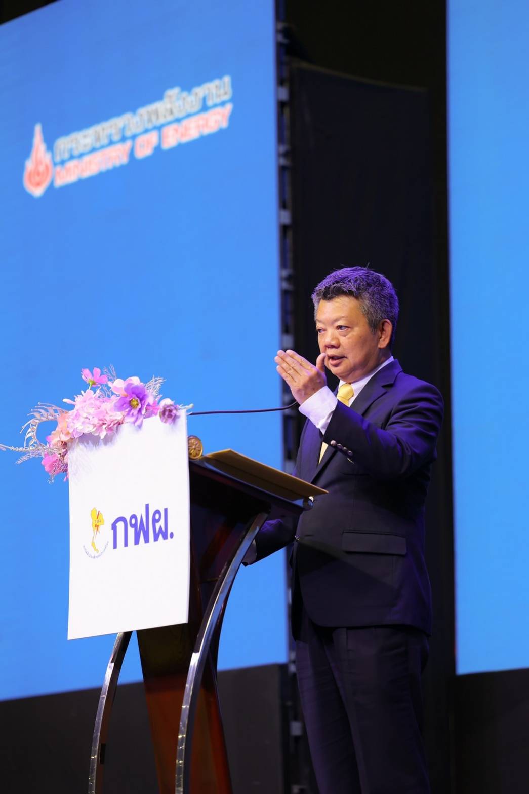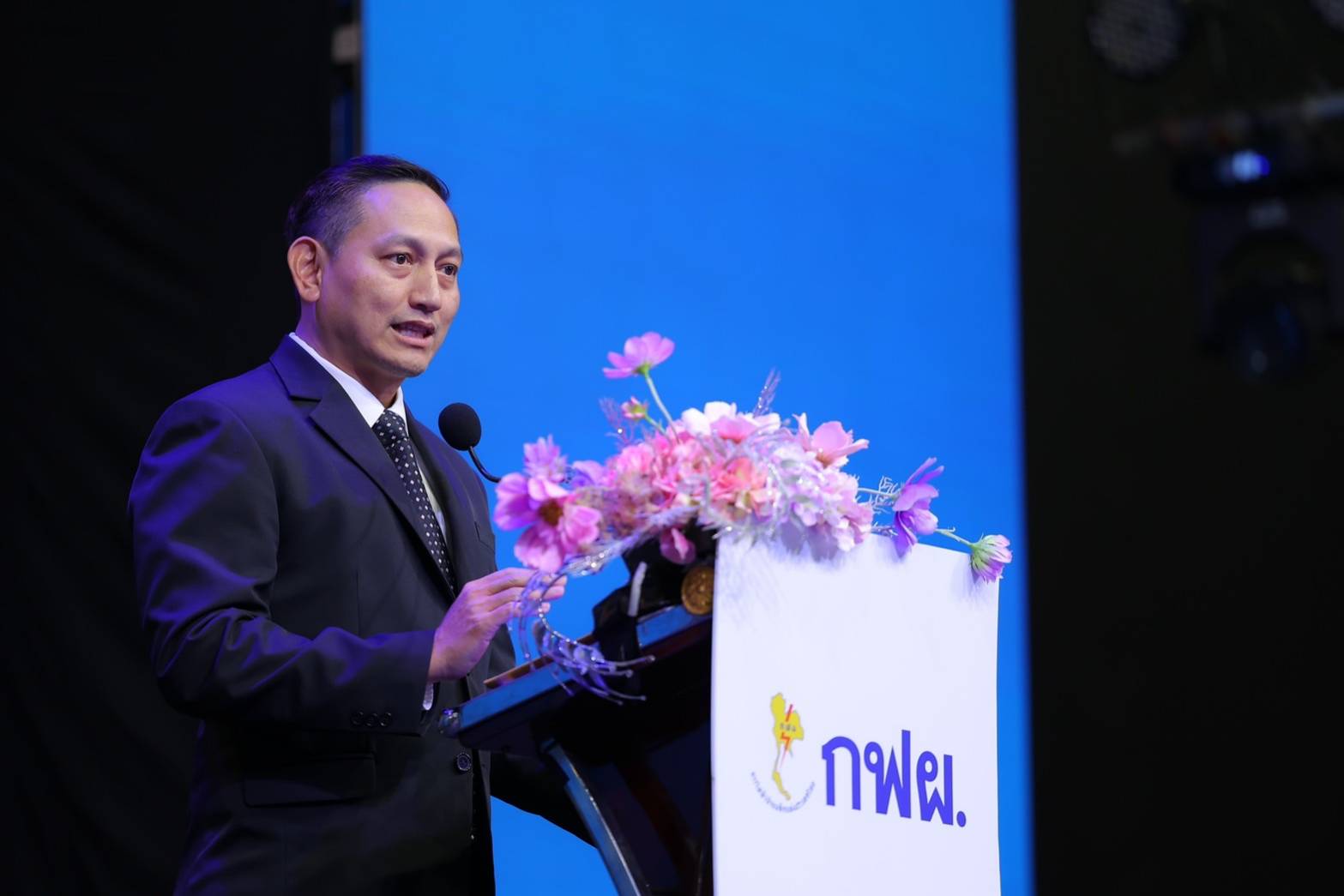 Mr. Veerapat Kiatfuengfoo, Deputy Permanent Secretary of the Ministry of Energy, gave a special speech on the topic of “Demand Side Management and the Future Direction of Thai Energy.” He stated that because Thailand is moving toward clean energy transition, the Ministry of Energy has established the framework for the National Energy Plan to achieve Carbon Neutrality by 2050 which aims to increase electricity generation from renewable energy by more than 50%, promote electrical vehicle usage, and increase energy efficiency. The goals are to reduce energy intensity by 30% and create participation in all sectors through mandatory strategy (e.g., Energy Efficiency Resources Standards: EERS, transportation tax measure), promotion strategy (e.g., equipment exchanges and high-efficient technology promotion measure, investment in energy efficiency promotion measure), and support strategy (e.g., development of technology and innovation support measure, development of energy conservation personnel support measure). Meanwhile, EGAT’s DSM created participation from various sectors in helping with energy conservation, leading to massive national energy conservation which will help enhance the competitiveness and investment of entrepreneurs in Thailand in the future.