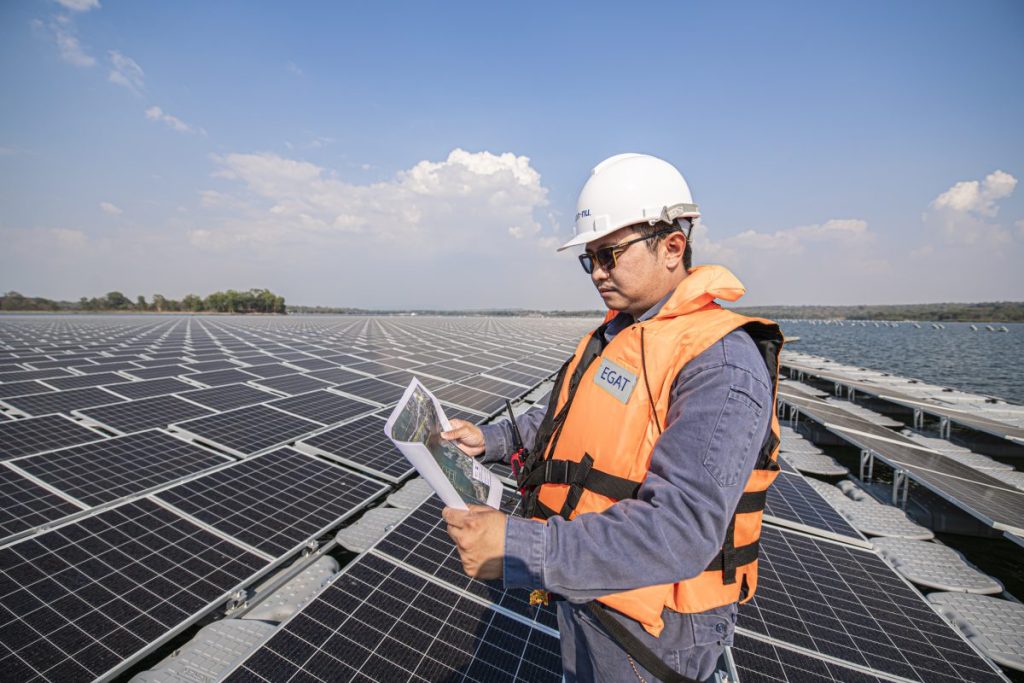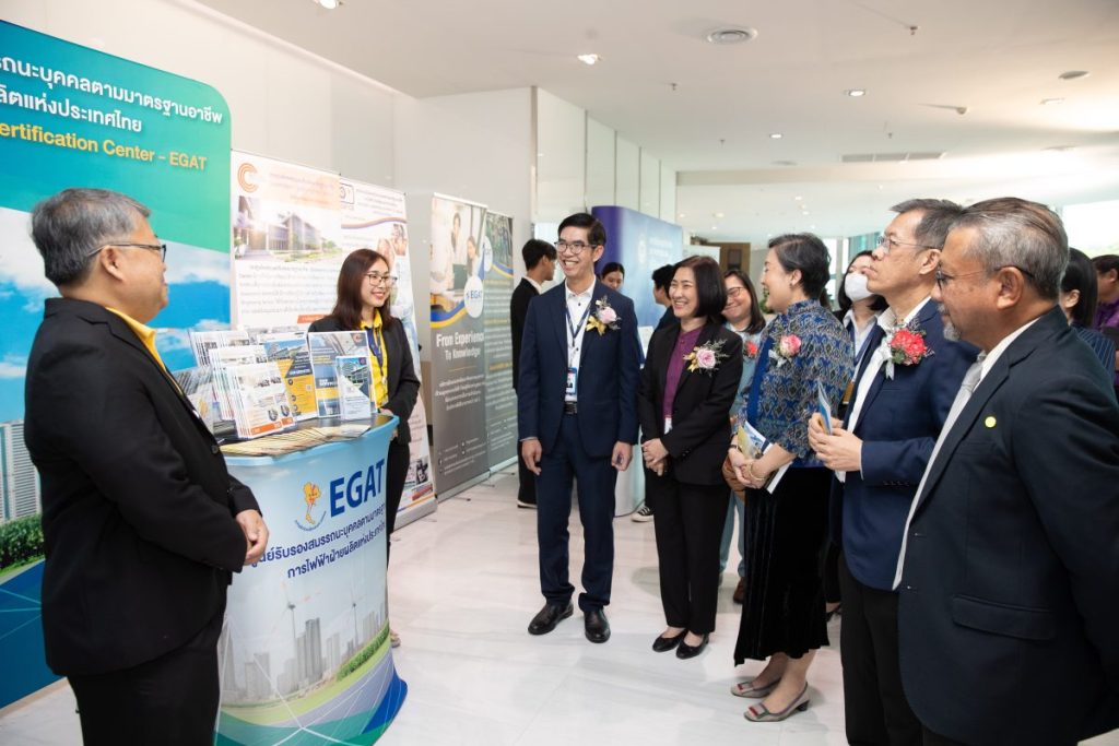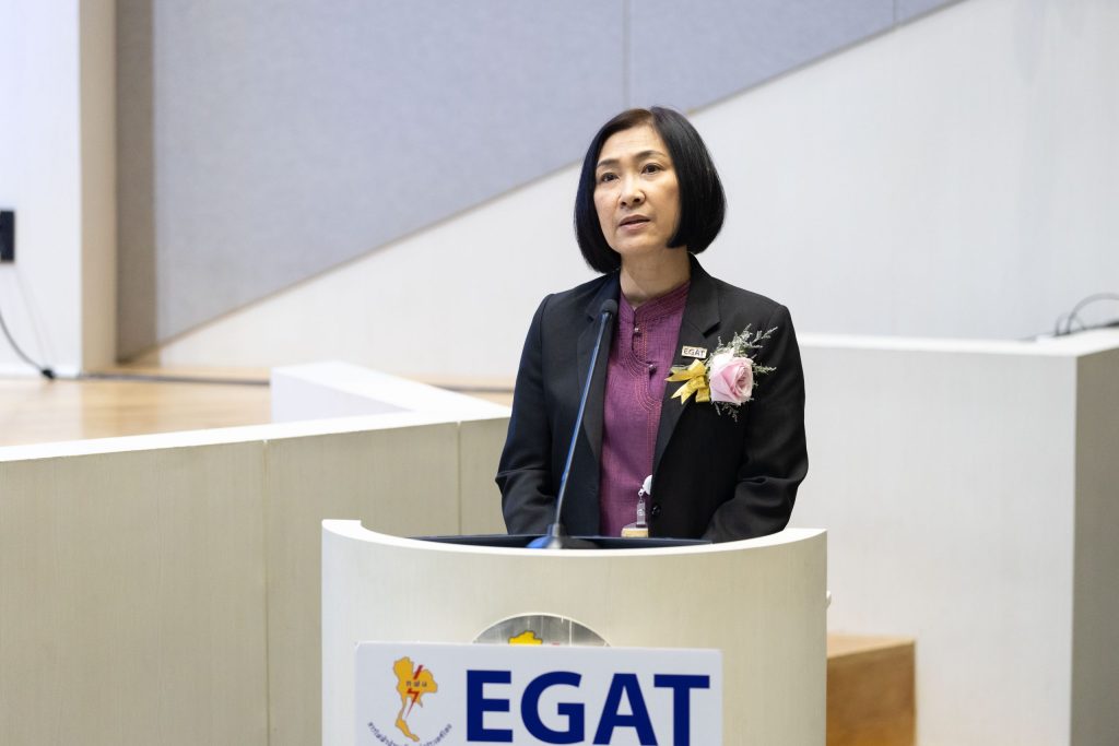 On April 2, 2024 Ms. Phana Supavakul, Assistant Governor – Organization Development and Acting Deputy Governor – Administration of the Electricity Generating Authority of Thailand (EGAT) chaired the opening ceremony of professional standards in the fields of energy and renewable energy, focusing on electrical energy from solar cells and wind power generation system. The ceremony was also attended by Ms. Jullada Meejul, Director General of Thailand Professional Qualification Institute (Public Organization) (TPQI); Asst. Prof. Dr. Kuskana Kubaha, Dean of School of Energy, Environment and Materials, King Mongkut’s University of Technology Thonburi (KMUTT); alliances; and personnel from electricity and renewable energy industries at the Auditorium, EGAT 50th Anniversary Building, EGAT Headquarters, Nonthaburi Province.