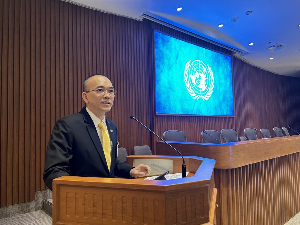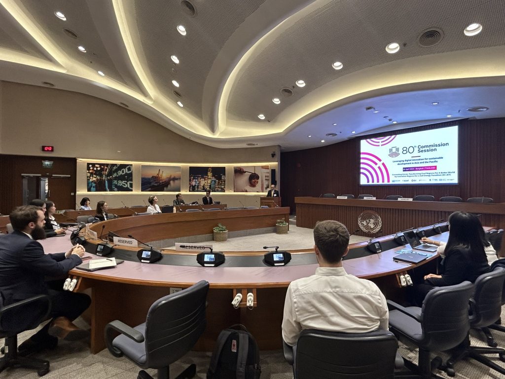 On April 26, 2024, Mr. Suttipong Chalermkiat, Assistant Governor – Generation 2, representing the Electricity Generating Authority of Thailand (EGAT), delivered the opening remarks for the conference “Side Event: Connecting Voices, Transforming Coal Regions for a Better World by Innovation Regions for a Just Energy Transition (IKI JET),” as part of the 80th Session of the United Nations Economic and Social Commission for Asia and the Pacific (ESCAP) at Conference Room 4, United Nations Conference Centre, Bangkok.