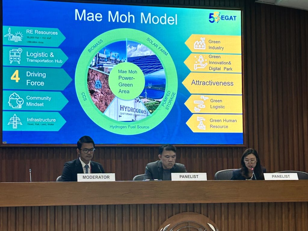 Mae Moh Green Model of EGAT Mae Moh aims for the transition from coal to renewable energy by developing the energy sources in the area, including biomass, solar power, pumped storage, hydrogen, and Carbon Capture and Storage (CCS). Moreover, there is the development of agricultural community using modern innovations in organic farming and grass cultivation for animal husbandry for the sustainable self-reliance of the community. With an analysis of the benefits, advantages, and disadvantages to the economy and society in the area for ensuring readiness among the public, the environment, and management. EGAT aims to foster a just energy transition for all stakeholders.