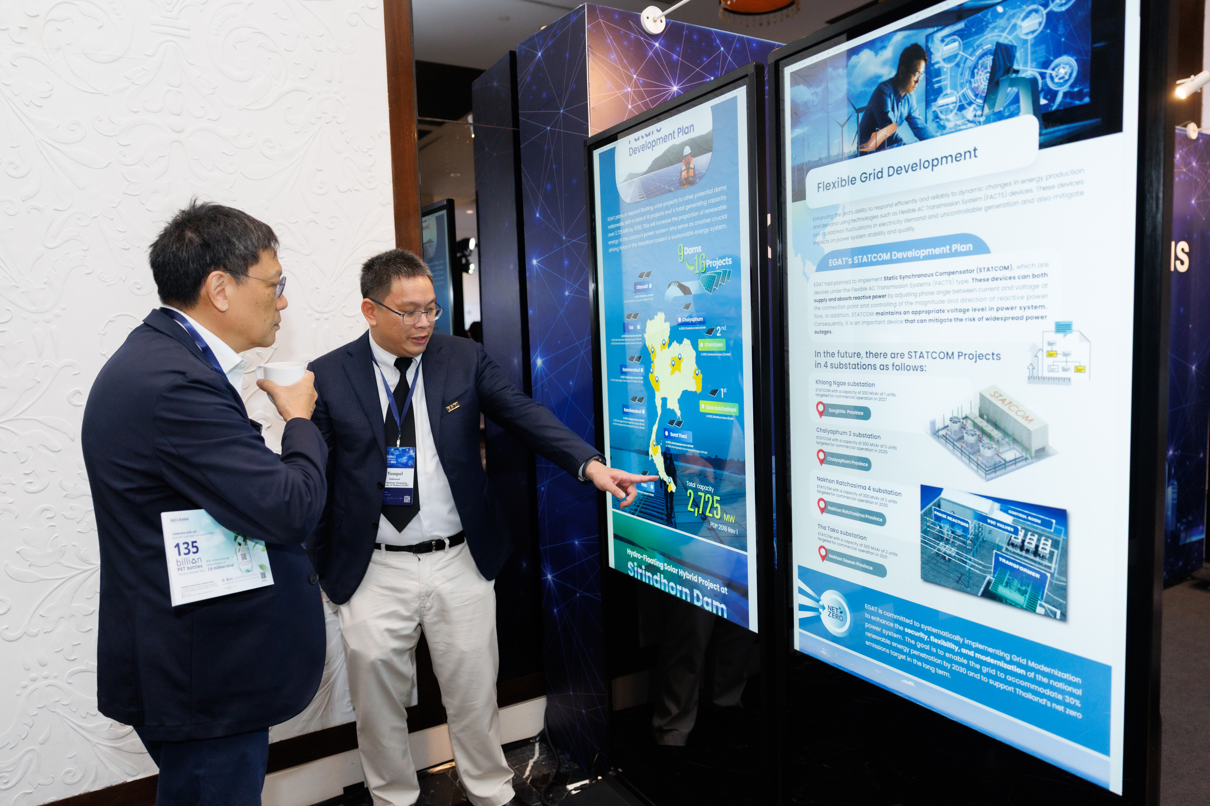 Additionally, EGAT held an exhibition to showcase energy innovations under the concept “Innovate Power Solutions for a Better Life” presenting concrete guidelines for energy development through four zones. The first zone, Grid Modernization, showcased the development of a modern and flexible power system to support the increasing renewable energy and enhance power system stability. The second zone, Floating Photovoltaic (FPV), showcased EGAT’s floating solar power plant projects which help increase the efficiency of electricity generation and reduce greenhouse gas emissions. The third zone showcased the study of Small Modular Reactor (SMR) technology, a low carbon energy source that is highly safe. The last zone showcased Decarbonization Solutions, from promoting the EV ecosystem to green energy mechanisms, such as Renewable Energy Certificate (REC) and Utility Green Tariff (UGT) to assist in the sustainable clean energy transition.
