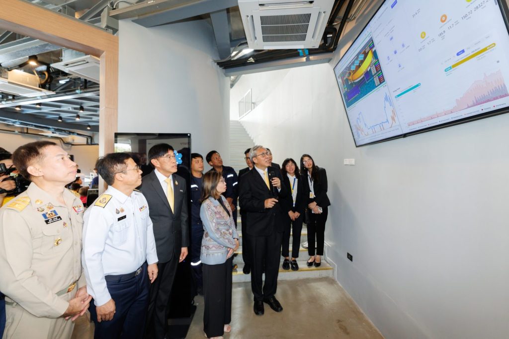 Mr. Thepparat Theppitak, Governor of EGAT, added that the “Rama VII Smart Pier” project is the outcome of collaboration between EGAT and the Marine Department. The project aims to develop Bang Kruai into a modern, environmentally-friendly city that supports the New Normal lifestyle. The new technologies have been integrated with water transportation to provide a new travel experience based on the 5-Smart concept, namely 1) Smart Energy – Apply solar power innovations combined with battery energy storage system to enable continuous electricity generation and efficient energy management within the building through a smart energy management system, 2) Smart Safety – Upgrade safety standards of the pier, such as installing CCTV surveillance and drowning alert systems, 3) Smart Lighting – Install automatic lighting system to reduce unnecessary power consumption, 4) Smart Digitalization – Implement intelligent digital information system to improve service efficiency, and 5) Smart Service – Provide the passengers with boat schedules, news, and tourist information in Bang Kruai District via the Smart Pier application, along with EV charging stations and smart charging booths for electric motorcycles.