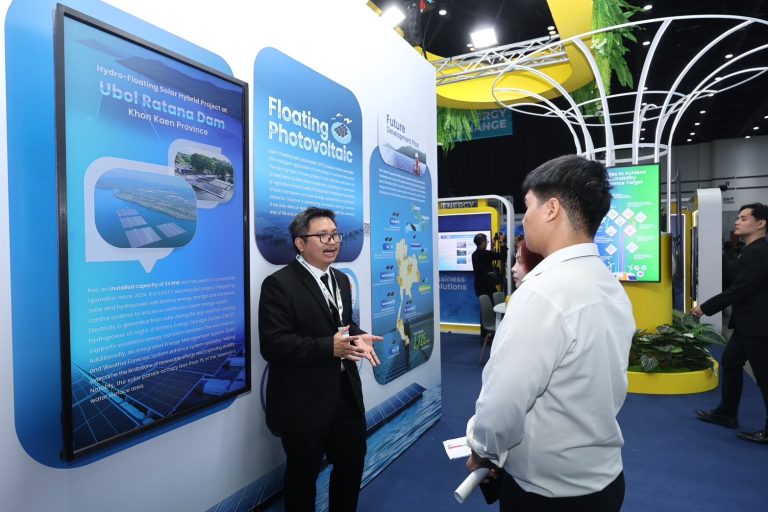 In this event, EGAT presented a three-zone exhibition under the concept “Energy Innovations to Achieve Carbon Neutrality for a Sustainable Future.” The first zone, Smart Energy for Harmonious Living, showcased energy technologies aimed at balancing the economy, society, and environment, such as floating solar panels, SMR, and sustainability bonds. The second zone, Reliable & Sustainable Power System, featured Grid Modernization innovations that enhance system stability to support energy transition and risk prevention measures. The third zone, Decarbonized Pathways, showcased new pathways toward Carbon Neutrality, such as Energy Solution & Carbon Credit, EV Solution, Robotic & AI, and Business & Network.