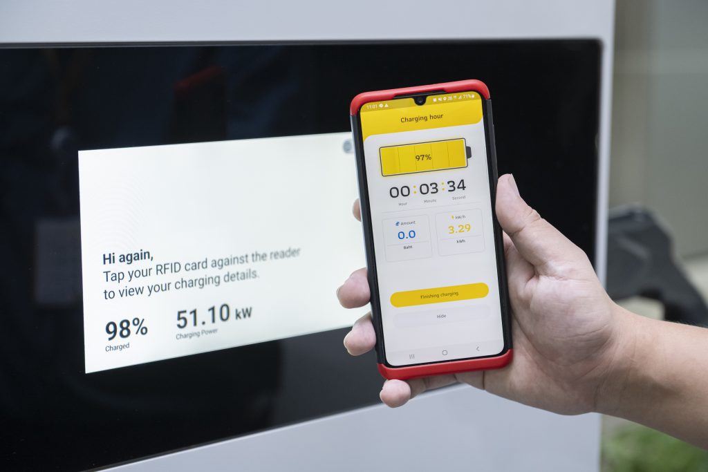 Apart from EV charging stations, applications are also necessary to help facilitate EV users. EleX by EGAT, coupled with the EleXA application, makes charging convenient and efficient. EGAT developed EleXA to be an assistant for EV users and to boost their confidence. The application offers features such as locating nearby stations, checking the availability status and reserving charging slots, or creating a trip plan before traveling to identify the location of charging stations along the route. As for payment, EleXA has been developed continuously and can now support up to 4 payment methods, including credit cards, QR code, SCB Easy, and MaxMe Wallet. And for every payment of 10 Baht, users will receive 1 EleXA point which can be redeemed for charging discounts or other special offers with partners. If users encounter any problems, customer service is available 24/7 to give advice. Currently, the application has over 200,000 users.
