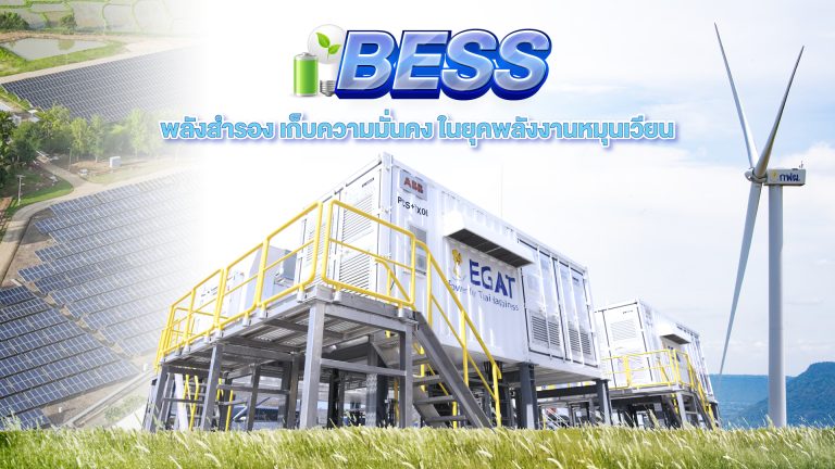 While aiming for clean energy transition, Battery Energy Storage System, or BESS, has become an important device for energy integration. It increases the stability of renewable energy which is often fluctuating and not consistent. Therefore, BESS is one of the technologies the Electricity Generating Authority of Thailand (EGAT) uses to help enhance power system security. BESS utilizes lithium-ion battery which has several notable features, such as rapid electricity supply within milliseconds (ms), lightweight, long lifespan of over 10 years. It is installed in a container with air-conditioning, making it similar to an energy box. It also takes up little space and can be used for various objectives, including supporting renewable energy. BESS helps store surplus energy to be used when there is no sunlight or wind, enabling maximum use of renewable energy and increasing the stability of the power system. This is immensely beneficial for maintaining the overall security of the grid (Grid Scale). Inside BESS are battery cells, power converter, power control and management system, and various security systems to provide the most stable energy reserve.