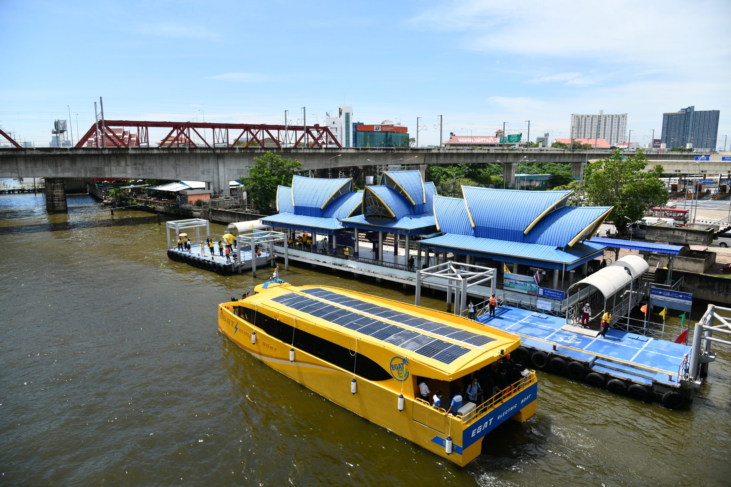Electric boat is an innovation of clean energy technology supported by EGAT in promotion of the efficient use of energy and in an environmentally-friendly manner. EGAT has cooperated with Kasetsart University in conducting a pilot project of developing an electric-powered boat as a shuttle boat for EGAT employees and for the use in EGAT’s mission as well as two charging stations. Two types of boats were designed for performance comparison, namely monohull and catamaran. Each boat consists of a driving kit which includes two sets of 55 kW motor, 214 kWh lithium battery, and 175 kW DC charger. The boat body is made of aluminum. The monohull can carry a total load of 23,000 kg and the catamaran can support 25,000 kg. Both types can accommodate the maximum of 80 passenger seats. They run at 20 km/h with the maximum distance of 60 km per one charge. At the initial stage, the boats will be tested on their performance before being put into public use to connect with the different travelling mode by ‘wheel, rail, and boat.’